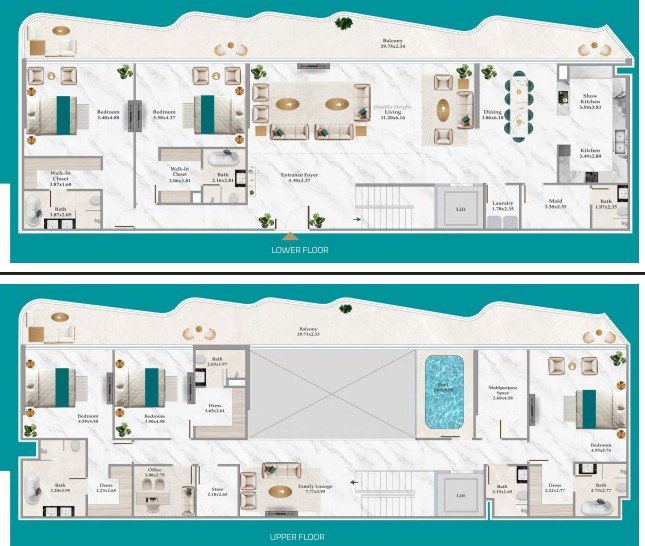 • Apartment types: From fully furnished studios to 4-bedroom units and exclusive 5-bedroom duplex villas, each with modern layouts and premium finishes.